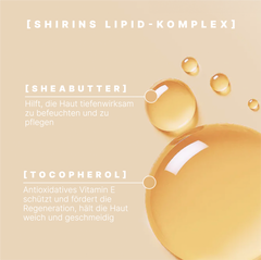 Der Lipid-Komplex sorgt für eine tiefgehende Pflege und stärkt die natürliche Hautbarriere. Der reichhaltige Komplex aus Sheabutter und Tocopherol (Vitamin E) nährt die Haut intensiv, spendet wertvolle Lipide und schützt sie vor äußeren Einflüssen.