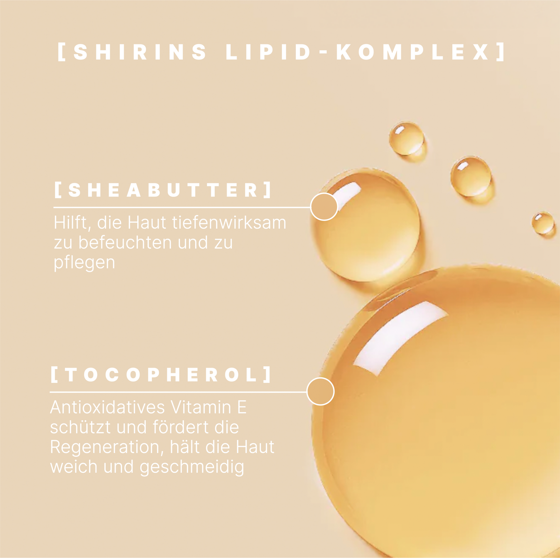 Dank der antioxidativen Eigenschaften des Lipid-Komplexes mit Sheabutter und Vitamin E werden freie Radikale reduziert, was die Haut länger jung hält.
